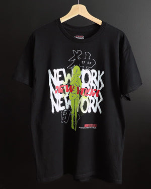 New York, where it all started. The design captures the essence of NY graffiti art merged with a neon green silhouette of our mascot, Imouri-Chan. Printed on a boxy fit heavyweight tee. The Japanese text through the middle says "Original".