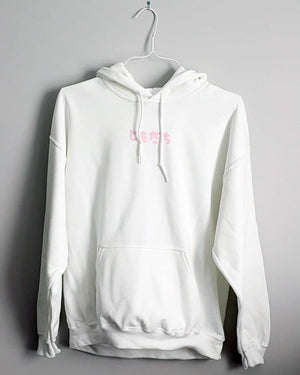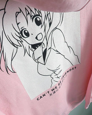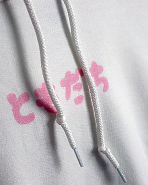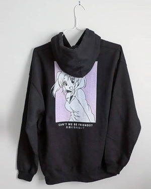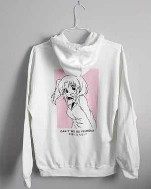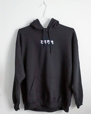 Tomodachi by Imouri. Features Anime Girl lineart on the back of the hoodie. Japanese text on the front reads, "Tomodachi" which translates to "Friends" in English.