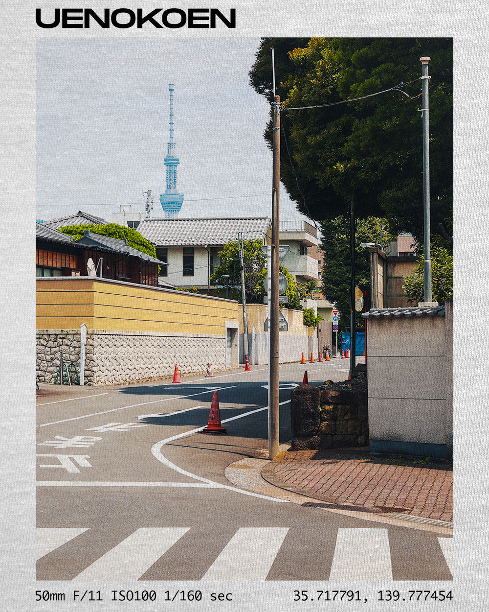 "Uenokoen" from the Imouri Japan line of t-shirts featuring a favorited collection of unique Japanese landscape and anime-like aesthetic scenery photographs personally captured through the lens of Imouri Founder, Ryan, in his travels across the country, Summer of 2024. The coordinates at the bottom of the back design mark the exact location at which each shot was taken, so you can hopefully visit to experience the exact view yourself one day.